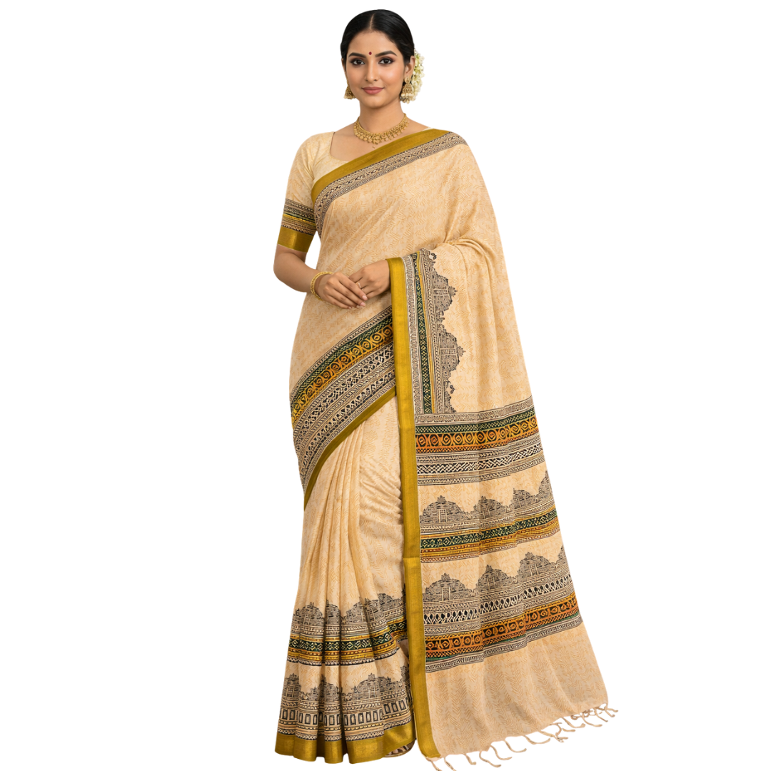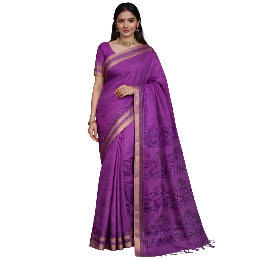 Experience timeless elegance with our Women’s Gond Art Hand-Block Print Cotton Saree, crafted from 100% premium cotton. Adorned with intricate Gond-inspired hand-block prints, this saree beautifully blends traditional artistry with modern charm. Its lightweight and breathable fabric make it perfect for both festive and everyday wear.
